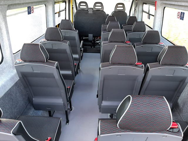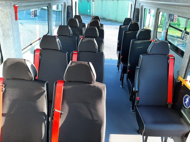 14 M2 tested rear saloon lightweight seats complete with trimmed headrests, lap and diagonal inertia reel safety belts (4 offside rear quick release lightweight removable seats)