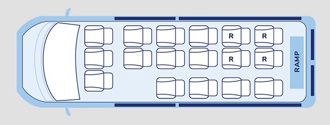 A certified fully crash tested floor capable of accommodating quick release seating and wheelchair clamping